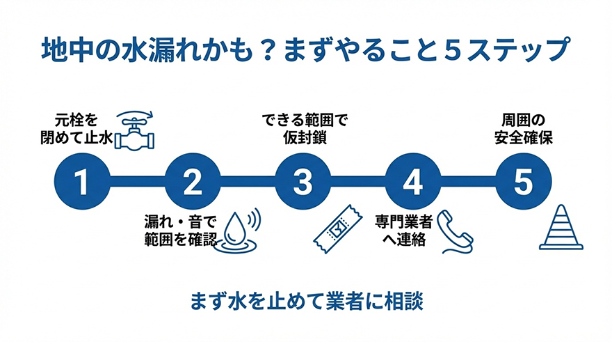 地中の水道管が水漏れしているかも?まず何をすればいい?